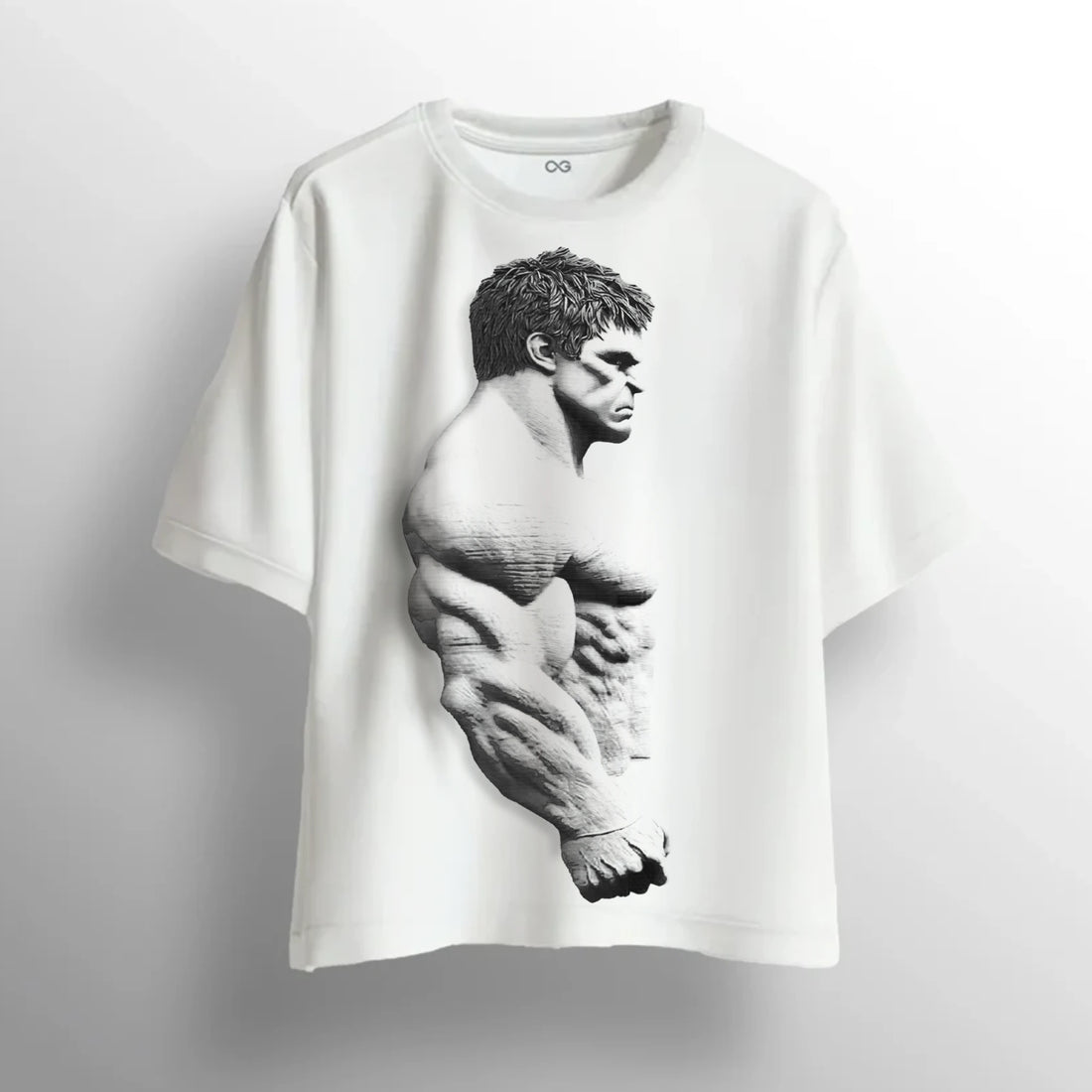 Unleash the monster. Our “Beast” tee frames a hyper-detailed, muscle-bound titan—rendered tone-on-tone so the art...