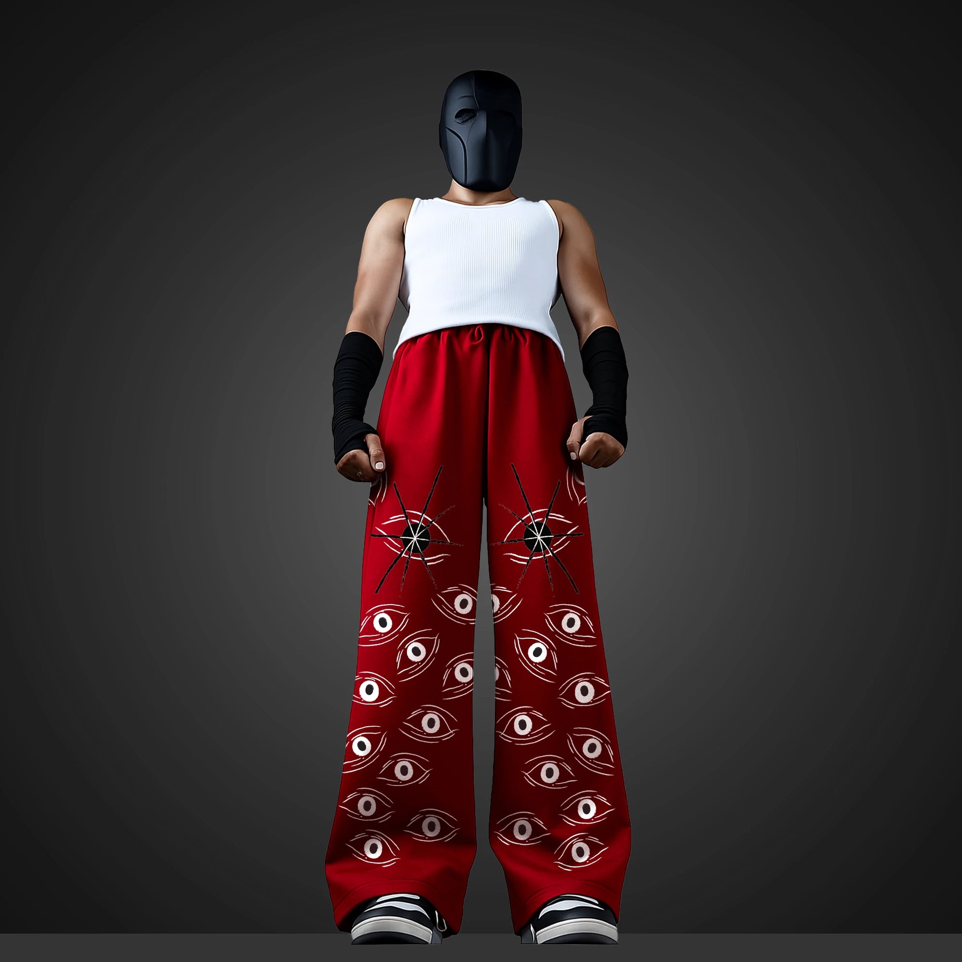 These wide-leg sweatpants feature a bold all-over eye graphic print, accented with striking red laser details that command attention. Designed for maximum comfort with a relaxed silhouette, elastic waistband, and premium fabric, they’re perfect for streetwear fits, studio sessions, or just owning the room.