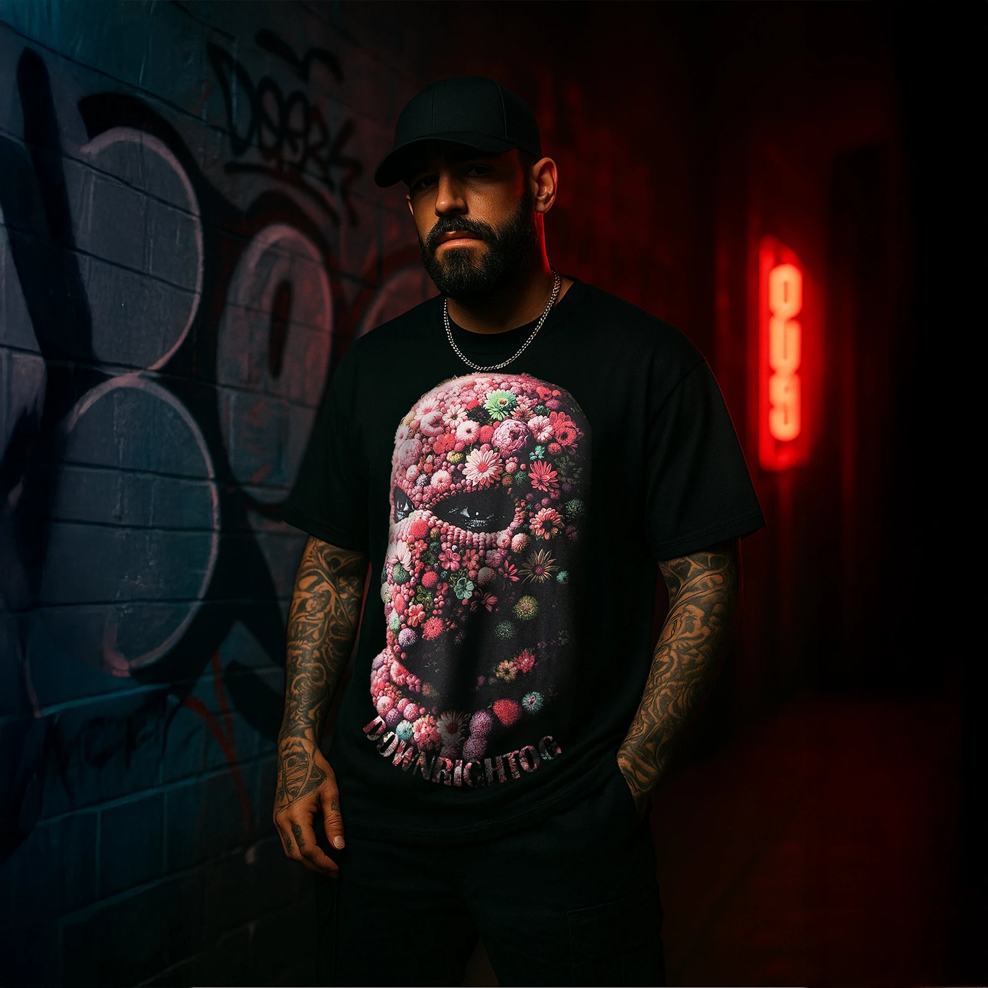 The Floral Outlaw tee by Downright OG flips the script on streetwear. Featuring a bold graphic of a ski mask wrapped in blooming florals, this piece is a statement of contrast—beauty and grit, rebellion and style