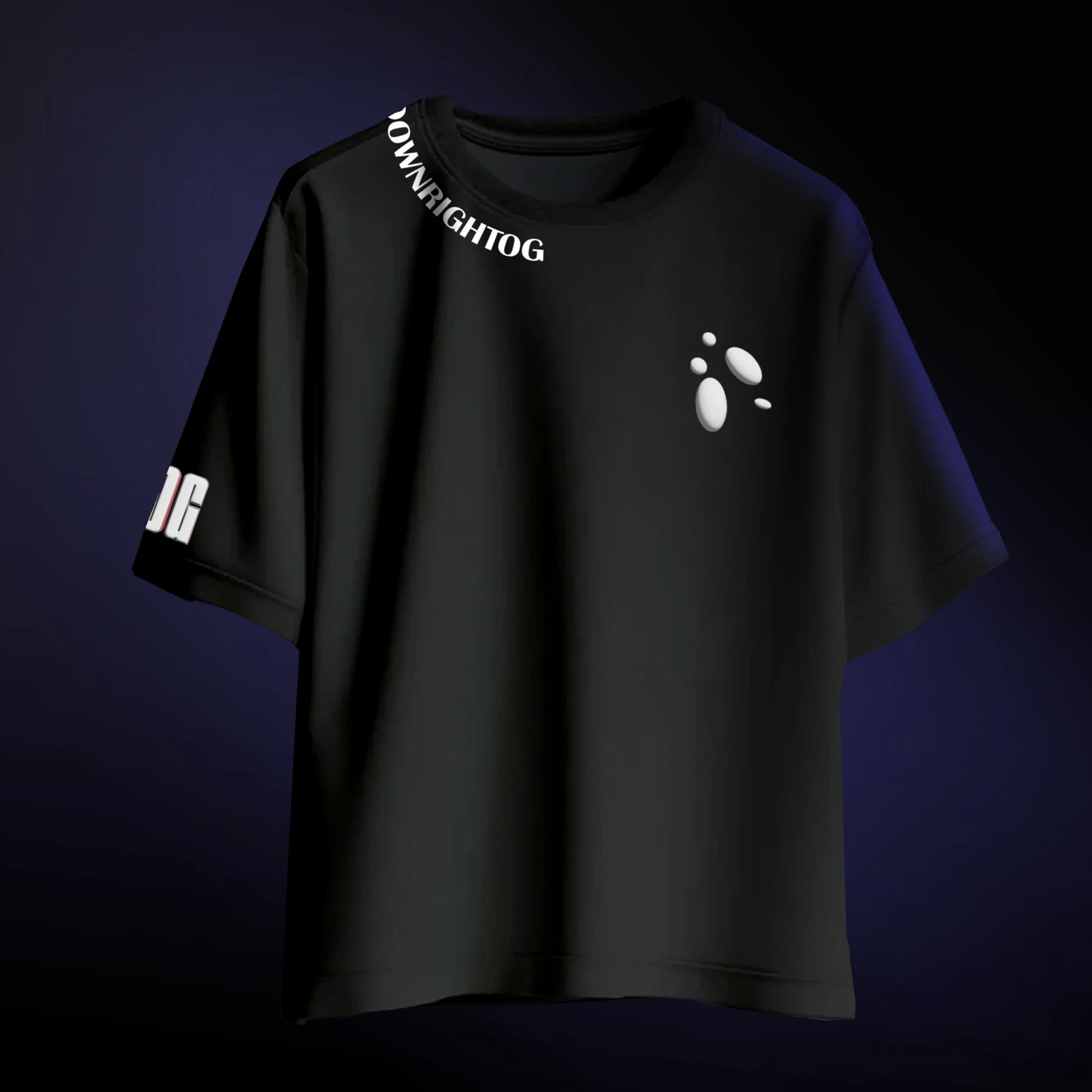 Crafted from premium cotton for a structured yet relaxed fit, it’s designed for those who lead—not follow. Details like the "DOWNRIGHTOG" neckline print and signature droplet motif add layered depth to a clean silhouette, making it a statement piece from every angle.
